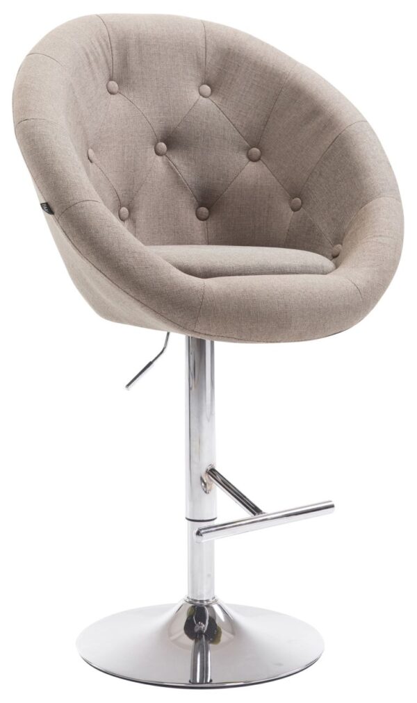 Barhocker London V2 Dieser Thekenhocker beeindruckt nicht nur mit seinem Design, sondern auch mit seiner Gemütlichkeit. Die gut gepolsterte Sitzfläche ist gesteppt und mit einem pflegeleichten Stoffbezug versehen. Durch die auffällige Rückenlehne, die in eins in die Armlehne übergeht, bietet dieser Hocker guten Sitzkomfort, auch über mehrere Stunden. Zudem ist dieser um 360° drehbare Thekenhocker höhenverstellbar und passt sich somit ideal an jede Körpergröße an. Der Trompetenfuß aus Metall ist mit einer stilvollen Fußstütze versehen, die das Sitzen noch bequemer gestaltet. Das Gestell ist zusätzlich mit einem Bodenschoner versehen, dieser verhindert Kratzer und Beschädigungen des Bodens. Ein absolutes Highlight für gemütliche Stunden an der Bar. Materialzusammensetzung: 100% Polyester Ca. Maße: Gesamthöhe: 107 – 128 cm Gesamtbreite: 65 cm Gesamttiefe: 57 cm Sitzhöhe: 66 – 87 cm Sitzf…