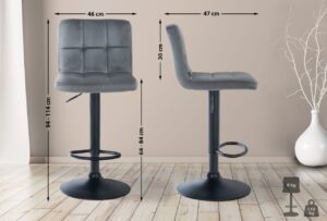 Barhocker Peru Samt Der Barhocker Peru Samt ist eine stilvolle Kombination aus Komfort und modernem Design, ideal für Wohn- und Barbereiche. Er bietet einen luxuriös gepolsterten Sitz aus gestepptem Samt, der überragenden Komfort garantiert. Seine Höhenverstellbarkeit und 360-Grad-Drehbarkeit erlauben flexible Nutzungsoptionen, während die robuste Metallbasis für Stabilität sorgt. Eine praktische Fußstütze fördert eine bequeme Sitzhaltung und erhöht den Komfort zusätzlich. Die einfache Montage und das bodenschonende Design machen den Peru Samt Barhocker zu einem unverzichtbaren Element jeder modernen Einrichtung. Materialzusammensetzung: 100% Polyester Ca. Maße: Gesamthöhe: 94-114 cm Gesamtbreite: 46 cm Gesamttiefe: 47 cm Sitzhöhe: 64-84 cm Höhe Rückenlehne: 30 cm Breite Rückenlehne: 46 cm Max. Belastbarkeit: 110 kg Gewicht: 8 kg Sitz: Bezug mit Ziernähten Angenehme Sitzposition durch…
