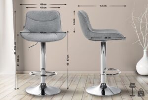 Barhocker Vonore Stoff Der Barhocker Vonore Stoff kombiniert Funktionalität und modernes Design. Der höhenverstellbare Barhocker bietet einen gepolsterten Sitz und eine ergonomische Form für optimalen Komfort. Die 360° Drehfunktion und die stufenlose Höhenverstellung ermöglichen flexible Sitzpositionen. Das Metallgestell und der Trompetenfuß sorgen für Stabilität und Langlebigkeit. Die integrierte Fußstütze passt sich der Sitzhöhe an und bietet zusätzliche Unterstützung. Der Stoffbezug ist langlebig und bietet ein angenehmes Sitzgefühl. Bodenschoner schützen vor Kratzern. Dieser Barhocker ist vielseitig einsetzbar und eignet sich für Küchen, Bars und gewerbliche Bereiche. Die hochwertige Verarbeitung und die durchdachten Details machen den Barhocker Vonore zu einer praktischen Wahl für verschiedene Einsatzmöglichkeiten. Materialzusammensetzung: 100% Polyester Ca. Maße: Gesamthöhe: 85 …