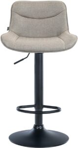 Barhocker Vonore Stoff Der Barhocker Vonore Stoff kombiniert Funktionalität und modernes Design. Der höhenverstellbare Barhocker bietet einen gepolsterten Sitz und eine ergonomische Form für optimalen Komfort. Die 360° Drehfunktion und die stufenlose Höhenverstellung ermöglichen flexible Sitzpositionen. Das Metallgestell und der Trompetenfuß sorgen für Stabilität und Langlebigkeit. Die integrierte Fußstütze passt sich der Sitzhöhe an und bietet zusätzliche Unterstützung. Der Stoffbezug ist langlebig und bietet ein angenehmes Sitzgefühl. Bodenschoner schützen vor Kratzern. Dieser Barhocker ist vielseitig einsetzbar und eignet sich für Küchen, Bars und gewerbliche Bereiche. Die hochwertige Verarbeitung und die durchdachten Details machen den Barhocker Vonore zu einer praktischen Wahl für verschiedene Einsatzmöglichkeiten. Materialzusammensetzung: 100% Polyester Ca. Maße: Gesamthöhe: 85 …
