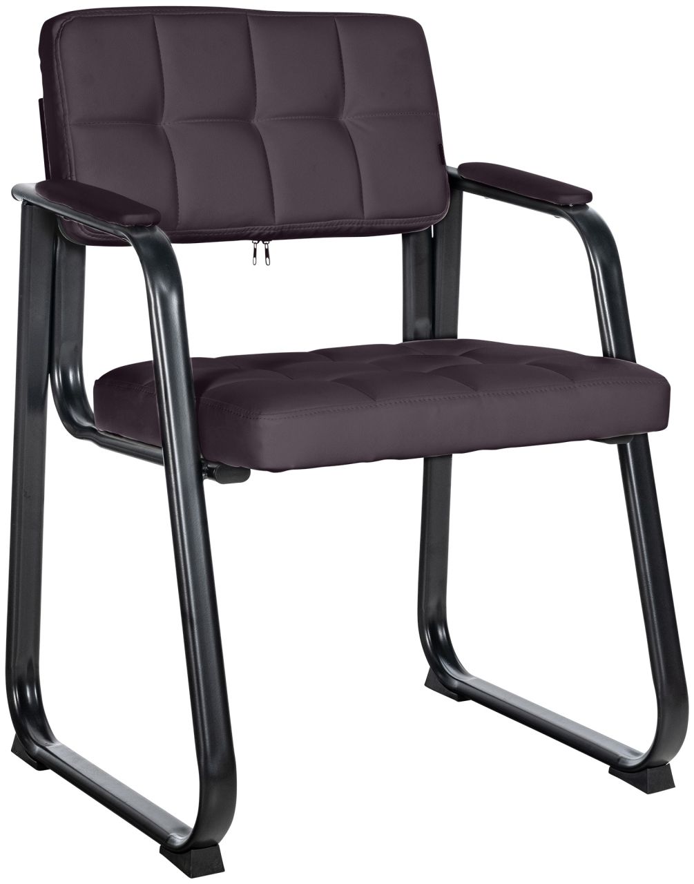 Stuhl Canada Dieser Stuhl Canada verleiht jedem Raum einen exklusiven Look. Mit großzügiger Polsterung von Sitzfläche, Rückenlehne und Armlehnen bietet dieser Stuhl hohen Sitzkomfort für lange Stunden. Das gesteppte Kunstleder verleiht ihm eine moderne Note, während das geschwungene Stuhlgestell aus schwarz lackiertem Metall Stabilität und Eleganz vereint. Vielseitig einsetzbar, passt der Stuhl in verschiedenste Umgebungen und lässt sich leicht in bestehende Einrichtungen integrieren. Die pflegeleichte Oberfläche des Kunstleder-Bezugs erleichtert die Reinigung, während Bodenschoner das Möbelstück und den Boden schützen. Dieser Besucherstuhl fügt sich harmonisch in jede Einrichtung ein. Ideal eignet er sich für Besprechungsräume, Wartezimmer und private Umfelder, wie die Küche und das Esszimmer. Materialzusammensetzung: 100 % Polyurethan Details: Gesamthöhe: 84 cm Gesamtbreite: 59 cm G…