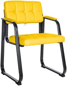 Stuhl Canada Dieser Stuhl Canada verleiht jedem Raum einen exklusiven Look. Mit großzügiger Polsterung von Sitzfläche, Rückenlehne und Armlehnen bietet dieser Stuhl hohen Sitzkomfort für lange Stunden. Das gesteppte Kunstleder verleiht ihm eine moderne Note, während das geschwungene Stuhlgestell aus schwarz lackiertem Metall Stabilität und Eleganz vereint. Vielseitig einsetzbar, passt der Stuhl in verschiedenste Umgebungen und lässt sich leicht in bestehende Einrichtungen integrieren. Die pflegeleichte Oberfläche des Kunstleder-Bezugs erleichtert die Reinigung, während Bodenschoner das Möbelstück und den Boden schützen. Dieser Besucherstuhl fügt sich harmonisch in jede Einrichtung ein. Ideal eignet er sich für Besprechungsräume, Wartezimmer und private Umfelder, wie die Küche und das Esszimmer. Materialzusammensetzung: 100 % Polyurethan Details: Gesamthöhe: 84 cm Gesamtbreite: 59 cm G…