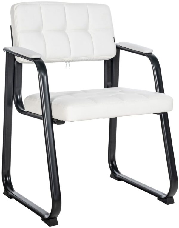 Stuhl Canada Dieser Stuhl Canada verleiht jedem Raum einen exklusiven Look. Mit großzügiger Polsterung von Sitzfläche, Rückenlehne und Armlehnen bietet dieser Stuhl hohen Sitzkomfort für lange Stunden. Das gesteppte Kunstleder verleiht ihm eine moderne Note, während das geschwungene Stuhlgestell aus schwarz lackiertem Metall Stabilität und Eleganz vereint. Vielseitig einsetzbar, passt der Stuhl in verschiedenste Umgebungen und lässt sich leicht in bestehende Einrichtungen integrieren. Die pflegeleichte Oberfläche des Kunstleder-Bezugs erleichtert die Reinigung, während Bodenschoner das Möbelstück und den Boden schützen. Dieser Besucherstuhl fügt sich harmonisch in jede Einrichtung ein. Ideal eignet er sich für Besprechungsräume, Wartezimmer und private Umfelder, wie die Küche und das Esszimmer. Materialzusammensetzung: 100 % Polyurethan Details: Gesamthöhe: 84 cm Gesamtbreite: 59 cm G…