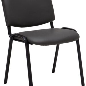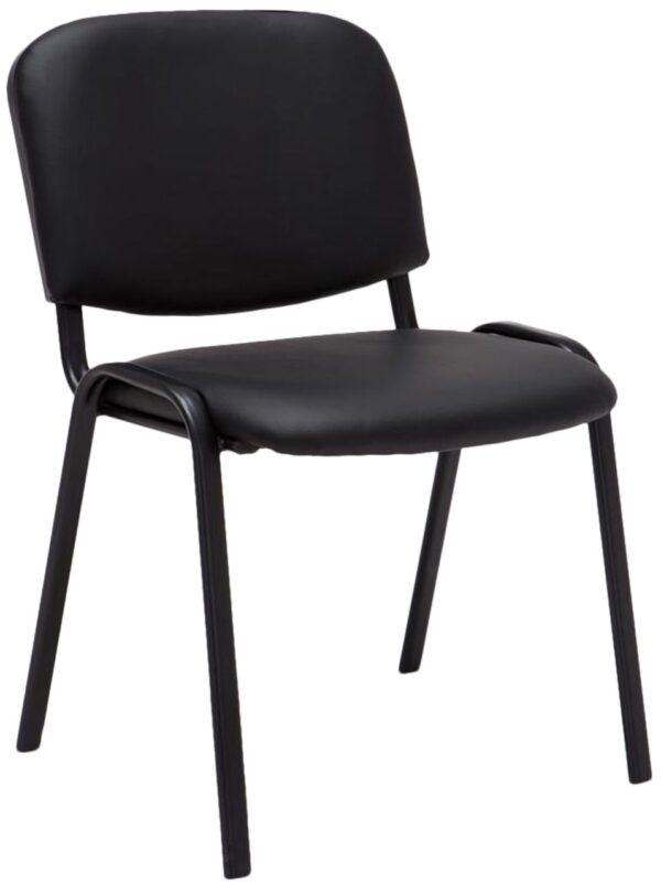 Stapelstuhl Ken mit Kunstleder-Bezug Der Stapelstuhl Ken vereint Sitzkomfort mit einfachem und modernem Design. Damit ist der Stuhl für professionelle Umfelder, wie Konferenzen, Messen, Schulungen, Veranstaltungen etc. ideal geeignet. Die gepolsterte Sitzfläche und Rückenlehne, bezogen mit pflegeleichtem Kunstleder, bieten ein langanhaltendend angenehmes Sitzgefühl. Dank des schwarzen Vierfußgestells aus Metall steht der Stuhl standsicher und stabil – bei einer maximalen Belastbarkeit von 120 kg. Bis zu vier Stühle können jeweils gestapelt werden, sodass diese platzsparend und flexibel gelagert und eingesetzt werden können. Bodenschoner aus Kunststoff verhindern, dass empfindliche Böden Schaden nehmen. Materialzusammensetzung: 100% Polyurethan Maße: Gesamthöhe: 79 cm Gesamtbreite: 54 cm Gesamttiefe: 48 cm Sitzhöhe: 44 cm Sitzfläche (B x T): 52 x 42 cm Höhe Rückenlehne: 35 cm Max. Bela…