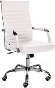 Bürostuhl Amadora Der Bürostuhl Amadora vereint stilvolles Design mit ergonomischer Funktionalität. Ausgestattet mit einer höhenverstellbaren und 360° drehbaren Sitzfläche, passt sich dieser Stuhl perfekt an Ihre individuellen Bedürfnisse an. Die Wippfunktion ermöglicht es Ihnen, sich auch während langer Arbeitsphasen zu entspannen und die Rückenlehne unterstützt eine gesunde Haltung. Das robuste Chromgestell und die leichtgängigen Rollen bieten eine lange Lebensdauer und hohe Stabilität. Wahlweise erhältlich in Kunstleder oder Stoff, bietet der Amadora Bürostuhl nicht nur Komfort, sondern auch eine pflegeleichte Oberfläche. Mit einer maximalen Belastbarkeit von 120 kg und einem modernen Design, ist dieser Stuhl die perfekte Ergänzung für jedes Büro. Materialzusammensetzung: 100% Polyurethan / 100 % Polyester Ca. Maße: Gesamthöhe: 98 – 106 cm Gesamtbreite: 51 cm Gesamttiefe: 63 cm Sit…