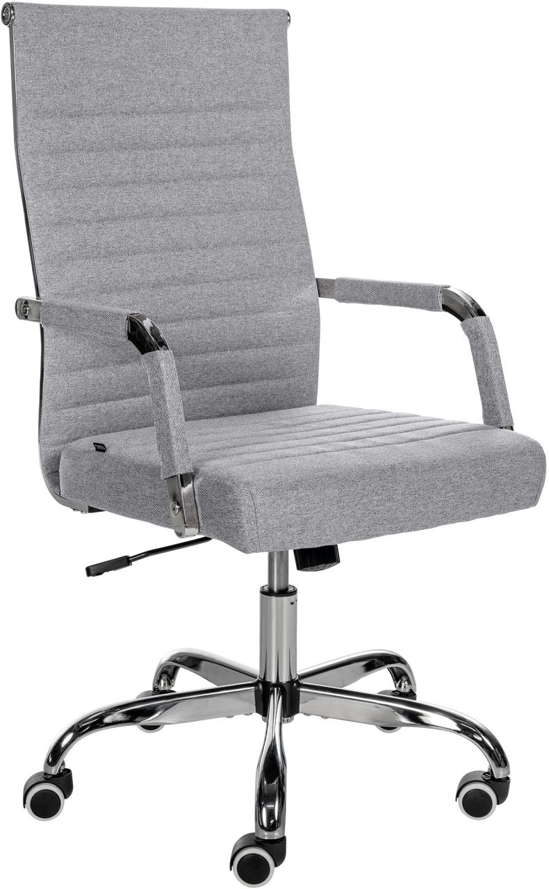 Bürostuhl Amadora Der Bürostuhl Amadora vereint stilvolles Design mit ergonomischer Funktionalität. Ausgestattet mit einer höhenverstellbaren und 360° drehbaren Sitzfläche, passt sich dieser Stuhl perfekt an Ihre individuellen Bedürfnisse an. Die Wippfunktion ermöglicht es Ihnen, sich auch während langer Arbeitsphasen zu entspannen und die Rückenlehne unterstützt eine gesunde Haltung. Das robuste Chromgestell und die leichtgängigen Rollen bieten eine lange Lebensdauer und hohe Stabilität. Wahlweise erhältlich in Kunstleder oder Stoff, bietet der Amadora Bürostuhl nicht nur Komfort, sondern auch eine pflegeleichte Oberfläche. Mit einer maximalen Belastbarkeit von 120 kg und einem modernen Design, ist dieser Stuhl die perfekte Ergänzung für jedes Büro. Materialzusammensetzung: 100% Polyurethan / 100 % Polyester Ca. Maße: Gesamthöhe: 98 – 106 cm Gesamtbreite: 51 cm Gesamttiefe: 63 cm Sit…