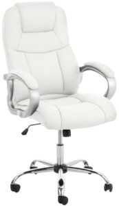 Bürostuhl Apoll XL Dieser Bürostuhl ist ideal für große und schwerere Personen geeignet, da die Gasdruckfeder auf einen dauerhaften Gebrauch von bis zu 150 kg Belastung ausgerichtet ist. Das Modell Apoll XL ist ein exklusiver Schreibtischstuhl mit einer hochwertigen Polsterung und pflegeleichtem Kunstlederbezug. Das stabile Gestell besteht aus Metall in Chrom-Optik. Dank der verstellbaren Neigung von Sitzfläche und Rückenlehne wird ergonomisches Sitzen begünstigt. Der Sitz ist mittels Hebel unter dem Sitz stufenlos höhenverstellbar. Ein weiterer Hebel seitlich der Armlehne dient zum Verstellen der Neigung von Sitzfläche und Rückenlehne. Der eingebaute Wippmechanismus sorgt für mehr Bewegungsfreiheit. Der Bürostuhl steht standsicher auf fünf beweglichen Leichtlaufrollen. Materialzusammensetzung: 100% Polyurethan Ca. Maße: Gesamthöhe: 113 – 122 cm Gesamtbreite: 66 cm Gesamttiefe: 70 cm …