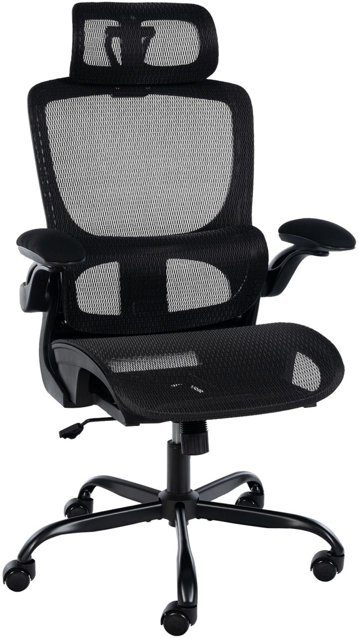 Bürostuhl Kaylee Der Bürostuhl Kaylee überzeugt durch ergonomisches Design, hohe Funktionalität und modernen Look ideal für lange Arbeitstage im Homeoffice oder Büro. Mit seiner atmungsaktiven Netz-Rückenlehne, verstellbarer Kopfstütze und klappbaren Armlehnen bietet er besten Sitzkomfort und fördert eine gesunde Körperhaltung. Die ergonomisch geformte Sitzfläche in Kombination mit der stufenlos höhenverstellbaren Gasdruckfeder passt sich optimal an unterschiedliche Körpergrößen an. Der integrierte Neigemechanismus ermöglicht entspanntes Zurücklehnen. Die stabile Basis mit fünf Leichtlaufrollen sorgt für maximale Mobilität und Sicherheit bei einer Belastbarkeit von bis zu 150 kg. Mit seinem schlichten und professionellen Design fügt sich der Drehstuhl Kaylee nahtlos in jede Büroeinrichtung ein. Ideal als ergonomischer Schreibtischstuhl, moderner Drehstuhl oder Homeoffice-Stuhl.