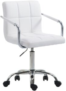 Bürostuhl Lucy V2 Die smarte Variante! Dieser exklusive Bürostuhl Lucy V2 überzeugt nicht nur mit seinem modernen Look, auch in Sachen Komfort kann ihm keiner etwas vormachen. Seine hochwertige Polsterung und der pflegeleichte Kunstleder-Bezug (100 % Polyurethan) sorgen für ein angenehmes Sitzgefühl. Das Modell Lucy V2 ist dank seiner niedrigen Rückenlehne zudem ideal für etwas kleinere Räume geeignet – damit Sie nicht den Überblick verlieren! Das elegante Chromgestell und die stabil geschwungenen Armlehnen mit Kunstlederbezug geben dem Ganzen noch das gewisse Extra. Dank der stufenlos verstellbaren Sitzhöhe garantiert dieser Bürostuhl zudem jederzeit ein ergonomisches Sitzen. Dabei steht er standsicher auf fünf Leichtlaufrollen und einem Gestell aus Metall in Chromoptik. Egal ob Hart- oder Teppichböden – Sie werden immer leicht und locker über den Boden rollen können. Materialzusam…