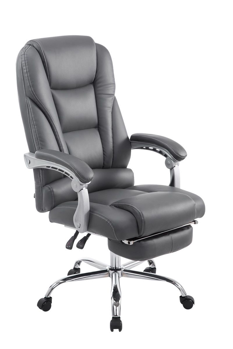 Bürostuhl Pacific Dieser eindrucksvolle Bürostuhl Pacific überzeugt nicht nur mit seinem edlen Look, auch in Sachen Komfort und Belastbarkeit kann ihm keiner etwas vormachen. Seine gute Polsterung und der pflegeleichte Kunstlederbezug mit stilvollen Ziernähten sorgen dabei für ein angenehmes Sitzgefühl, auch bei längerer Verweildauer. Dank der stufenlos verstellbaren Sitzhöhe garantiert der Bürostuhl Pacific zudem jederzeit ein ergonomisches Sitzen. Die leicht verstellbare Fußstütze und Rückenlehne sorgen zusätzlich für eine angenehme Pause zwischendurch, bei der sich entspannt zurückgelehnt werden darf und die Beine hochgelegt werden können. Dabei steht er standsicher auf fünf Leichtlaufrollen und einem Gestell aus Metall in Chromoptik. Egal ob Hart- oder Teppichböden – Sie werden immer leicht und locker über den Boden rollen können. Materialzusammensetzung: 100% Polyurethan Ca. Maße…