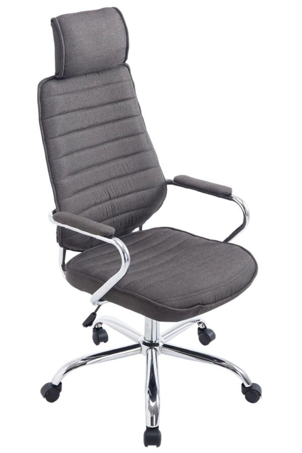 Bürostuhl Rako Stoff – Geben Sie Stoff am Arbeitsplatz! Der Chefsessel Rako Stoff ist ein Bürostuhl mit einer sehr hochwertigen Polsterung und modernen Stoffoptik. Dabei sieht der Stoffbezug nicht nur schön aus, er ist auch besonders robust und pflegeleicht. Ein stabiles Metallgestell in Chromoptik sorgt zusätzlich für einen sicheren Stand. Zudem ist Dank einer verstellbaren Sitzhöhe das ergonomische Sitzen garantiert. Ein eingebauter Wippmechanismus sorgt für mehr Bewegungsfreiheit. Der Bürostuhl Rako Stoff steht fest auf fünf Leichtlaufrollen. Egal ob Hart- oder Teppichböden – Sie werden immer leicht und locker über den Boden rollen können. Materialzusammensetzung: 100% Polyester Ca. Maße: Höhe: 117 – 128 cmBreite: 60 cmTiefe: 67 cmSitzhöhe: 46 – 56 cmSitzfläche (BxT): 51 x 49 cmHöhe Rückenlehne: 57 cmHöhe Rückenlehne inkl. Kopfteil: 75 cmHöhe Kopfteil: 18 cmHöhe Armlehne: 63 – 73 c…