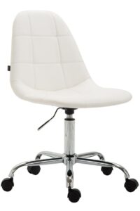 Bürostuhl Reims Der Bürostuhl Reims besticht durch seine komfortable Polsterung und einen schlanken, rundlichen Look. Rechteckige Ziernähte und klare Farbvarianten machen den Bürostuhl zum optischen Highlight an jedem Arbeitsplatz. Der filigrane Sitz ist mit einem Kunstlederbezug überzogen und dank einer stufenlos verstellbaren Sitzhöhe ist das ergonomische Sitzen garantiert. Dabei steht er standsicher auf fünf Leichtlaufrollen und einem Gestell aus Metall in Chromoptik. Durch sein praktisches Design ist er auch für kleinere Räume geeignet und flexibel einsetzbar. Egal ob Hart- oder Teppichböden man kann immer leicht und locker über den Boden rollen. Materialzusammensetzung: 100% Polyurethan Ca. Maße: Gesamthöhe: 79 – 89 cm Gesamtbreite: 47 cm Gesamttiefe: 56 cm Sitzhöhe: 44 – 54 cm Sitzfläche (BxT): 47 x 41 cm Höhe Rückenlehne: 39 cm Max. Belastbarkeit: 115 kg Gewicht: 7 kg Sitz: B…