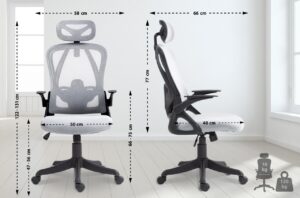 Bürostuhl Taos Mit außerordentlichem Sitzkomfort und moderner Optik weiß der Bürostuhl Taos zu überzeugen. Den hohen Sitzkomfort verdankt der Drehstuhl seiner zahlreichen ergonomischen Features: Die Rückenlehne besitzt eine einstellbare Wipp-Mechanik, eine Lendenwirbelstütze und eine Kopfstütze, die ebenfalls angepasst werden kann. Der Netzbezug über Rückenlehne und Kopfstütze ist atmungsaktiv. Die Armlehnen entlasten Nacken- und Schulterpartie und können auch hochgeklappt werden. Über den hochwertigen Gaslift ist der Drehstuhl stufenlos höhenverstellbar. Stabilen Stand verleiht dem Drehstuhl schließlich das äußerst robuste Gestell mit seinen Leichtlaufrollen. Die maximale Belastbarkeit beträgt 120 kg. Details: Höhe: 122 – 131 cm Breite: 58 cm Tiefe: 66 cm Sitzhöhe: 47 – 56 cm Sitzfläche (B x T): 50 x 48 cm Höhe Rückenlehne: 77 cm Höhe Armlehnen: 66 – 75 cm Max. Belastbarkeit: 120 kg …