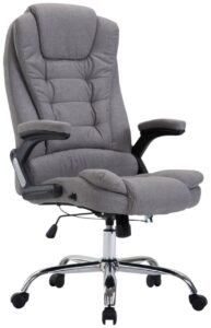 XL Bürostuhl Thor – Komfortables Sitzen an jedem Schreibtisch! Der stilvolle Chefsessel Thor zeichnet sich durch sein ansprechendes Design aus und auch in Sachen Komfort kann ihm keiner etwas vormachen. Die hochwertige Polsterung mit klassischem Stoffbezug sorgt für ein angenehmes Sitzgefühl. Zudem ist dank einer stufenlos verstellbaren Sitzhöhe das ergonomische Sitzen garantiert und ein eingebauter Wippmechanismus sorgt für mehr Bewegungsfreiheit. Dank der max. Belastbarkeit von 150 kg ist der Bürosessel ideal für große und schwerere Personen geeignet. Das Gestell des Bürostuhls besteht aus Metall in Chromoptik und steht standsicher auf fünf Leichtlaufrollen. Egal, ob Hart- oder Teppichböden – man kann immer leicht und locker über den Boden rollen. Materialzusammensetzung: 100% Polyester Ca. Maße: Gesamthöhe: 113 – 123 cm Gesamtbreite: 69,5 cm Gesamttiefe: 78 cm Sitzhöhe: 49 – 59 cm …