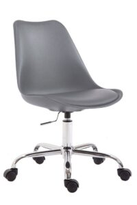 Bürostuhl Toulouse Kunststoff – modern und praktisch! Dieser Bürostuhl sieht durch seinen Materialmix aus Kunststoff, Kunstleder und Metallgestell einfach nur stylisch aus und überzeugt mit Funktionalität. Durch sein praktisches Design ist er auch für kleinere Räume geeignet. Der gepolsterte Sitz ist mit einem Kunstlederbezug überzogen und dank einer stufenlos verstellbaren Sitzhöhe ist das ergonomische Sitzen garantiert. Dabei steht er standsicher auf fünf Leichtlaufrollen und einem Gestell aus Metall in Chromoptik. Egal ob Hart- oder Teppichböden man kann immer leicht und locker über den Boden rollen. Materialzusammensetzung: 100% Polyurethan Ca. Maße: Gesamthöhe: 81 – 91 cm Gesamtbreite: 48 cm Gesamttiefe: 54 cm Sitzhöhe: 42 – 52 cm Sitzfläche: 48 x 42 cm Höhe Rückenlehne (Sitz): 41 cm Max. Belastbarkeit: 136 kg Sitz: Bezug: Kunstleder Angenehme Sitzposition durch Rückenlehne Sit…