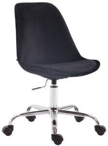 Bürostuhl Toulouse Samt – modern und praktisch! Dieser Bürostuhl sieht durch seinen Materialmix aus Samt und Metall in Chromoptik einfach nur stylisch aus und überzeugt mit Funktionalität. Durch sein praktisches Design ist er auch für kleinere Räume geeignet. Der gepolsterte Sitz ist mit einem Samtbezug überzogen und dank einer stufenlos verstellbaren Sitzhöhe ist das ergonomische Sitzen möglich. Dabei steht er standsicher auf fünf Leichtlaufrollen und einem Gestell aus Metall in Chromoptik. Egal ob Hart- oder Teppichböden man kann leicht und locker über den Boden rollen. Materialzusammensetzung: 100% Polyester Ca. Maße: Gesamthöhe: 81 – 91 cm Gesamtbreite: 48 cm Gesamttiefe: 54 cm Sitzhöhe: 42 – 52 cm Sitzfläche: 48 x 42 cm Höhe Rückenlehne (Sitz): 41 cm Max. Belastbarkeit: 136 kg Sitz: Bezug: Samt Angenehme Sitzposition durch Rückenlehne Sitzfläche angenehm gepolstert Gestell: Mat…