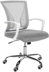 Bürostuhl Tracy – Ein idealer Begleiter für den Einsatz im Büro oder Wohnbereich! Dieser Bürostuhl beeindruckt durch sein modernes Design und die solide Verarbeitung. Der pflegeleichte Netzbezug sieht nicht nur schön aus, er ist besonders atmungsaktiv. Das ermöglicht ein bequemes Sitzen ohne ins Schwitzen zu kommen. Die Sitzhöhe kann mittels des Hebels unter dem Sitz stufenlos verstellt werden. Dadurch ist ein hoher Komfort während des Arbeitens oder beim Entspannen garantiert. Der Bürostuhl steht standsicher auf fünf gummierten Leichtlaufrollen. Egal ob Hart- oder Teppichböden – Sie werden immer leicht und locker über den Boden rollen können. Das Gestell aus Metall ist in zwei Farben erhältlich. Materialzusammensetzung: 100% Polyester Ca. Maße: Gesamthöhe: 94 – 104 cm Gesamtbreite: 59 cm Gesamttiefe: 56,5 cm Sitzhöhe: 45 – 55 cm Sitzfläche (BxT): 49 x 51 cm Höhe Rückenlehne: 58 cm Br…