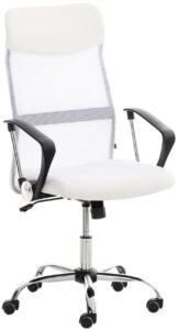 Bürostuhl Washington V2 Dieser hochwertige Bürostuhl im schlichten edlen Design ist mit Netzbezug bezogen. Der Bezug ist atmungsaktiv, was gerade bei hohen Temperaturen zum Vorteil werden kann. Dank der verstellbaren Sitzhöhe und den angenehm gepolsterten Armlehnen ist ergonomisches Sitzen garantiert. Die Sitzhöhe ist mit dem Hebel unter dem Sitz stufenlos verstellbar. Das Metallgestell ist verchromt und sehr stabil, für zusätzliche Standsicherheit sorgen die fünf robusten Leichtlaufrollen, mit denen Sie sowohl über Hart- als auch Teppichböden immer leicht und locker rollen können. Materialzusammensetzung: 100% Polyester Ca. Maße: Gesamthöhe: 110 – 118 cm Gesamtbreite: 60 cm Gesamttiefe: 53 cm Sitzhöhe: 47 – 55 cm Sitzfläche (BxT): 50 x 50 cm Lehnenhöhe: 67 cm Armlehnenhöhe: 22 cm Max. Belastbarkeit: 140 kg Sitz: Material: Netzbezug Mit Armlehnen Gestell: Material: Metall 5 Leichtlauf…