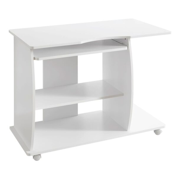 Computertisch GRASSE rollbar Weiß 90 x 71 x 50 cm mit Tastaturauszug, Laptop Tisch auf feststellbaren Rollen, PC-Tisch mit Drucker-Ablage platzsparend, Schreibtisch für kleine Räume