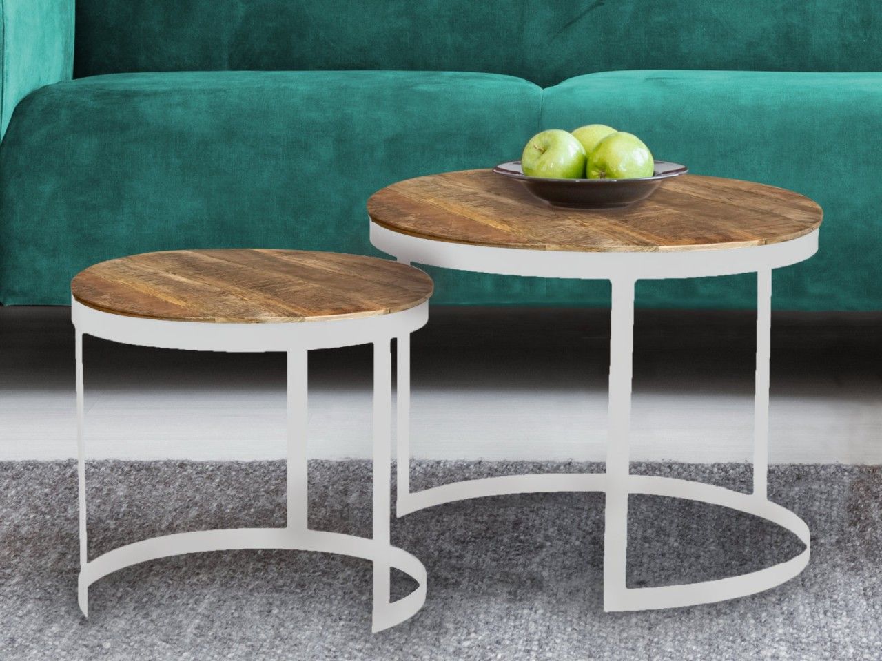 Couchtisch 2er Set Beistelltisch Wohnzimmer-Tisch rund Austin Metall-Gestell altsilber o. schwarz reinweiß - tabacco