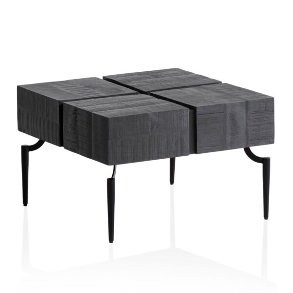 Couchtisch Mango Massivholz 60x60x40 cm Quadratisch mit Metallgestell, Kleiner Sofatisch Würfel-Form, Wohnzimmertisch Couch Modern, Kaffeetisch Cube Schwarz