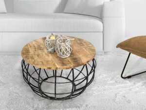 Couchtisch ø 55 cm Wohnzimmer-Tisch rund Beistelltisch nachhaltig London Metall Drahtgestell Gitter tabacco