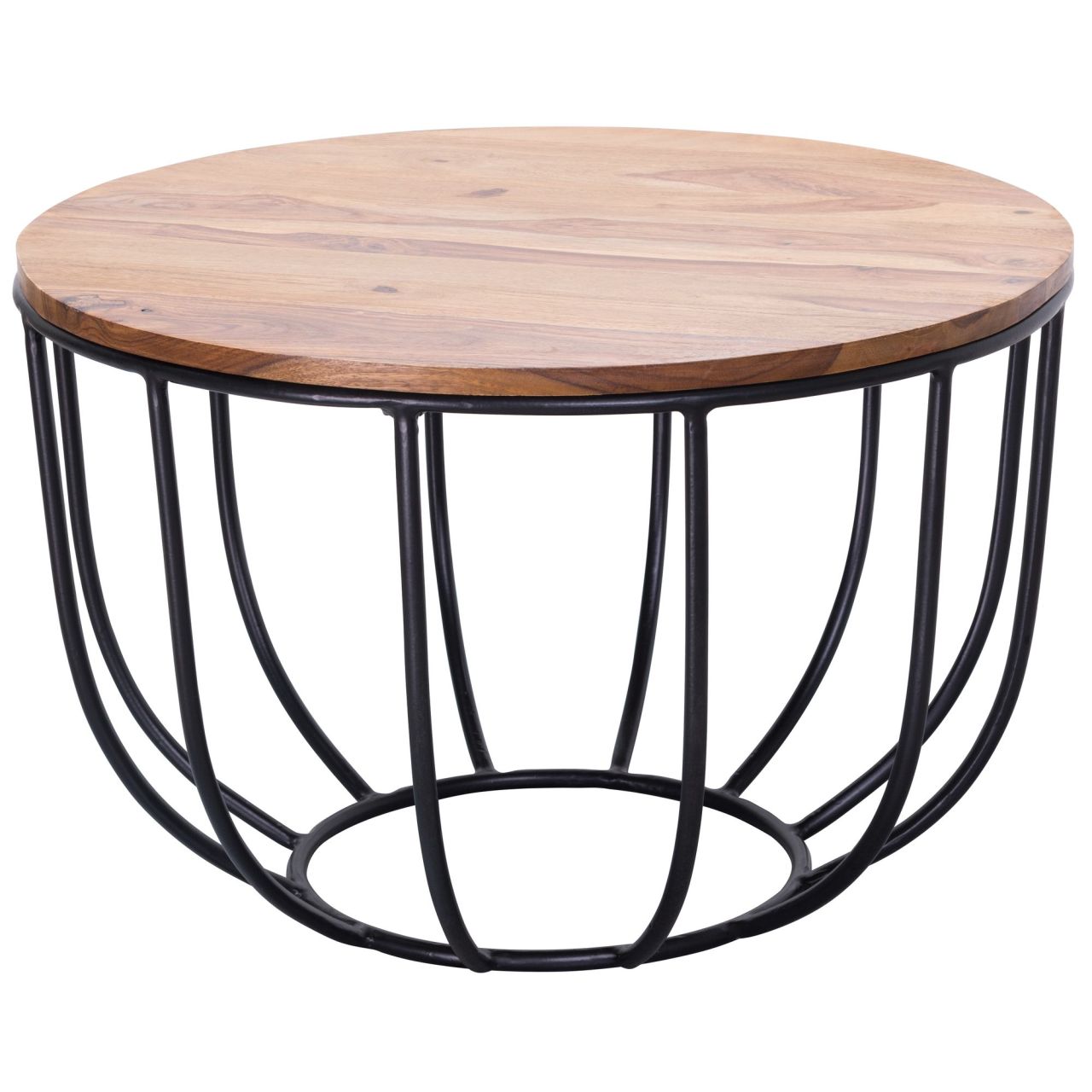 Design Charmanter Couchtisch im angesagten Industrial-Stil Runde Tischplatte zur Ablage von diversen Utensilien Tisch versprüht Leichtigkeit durch sein offenes Korbgestell Abmessungen Breite: 60 cm...