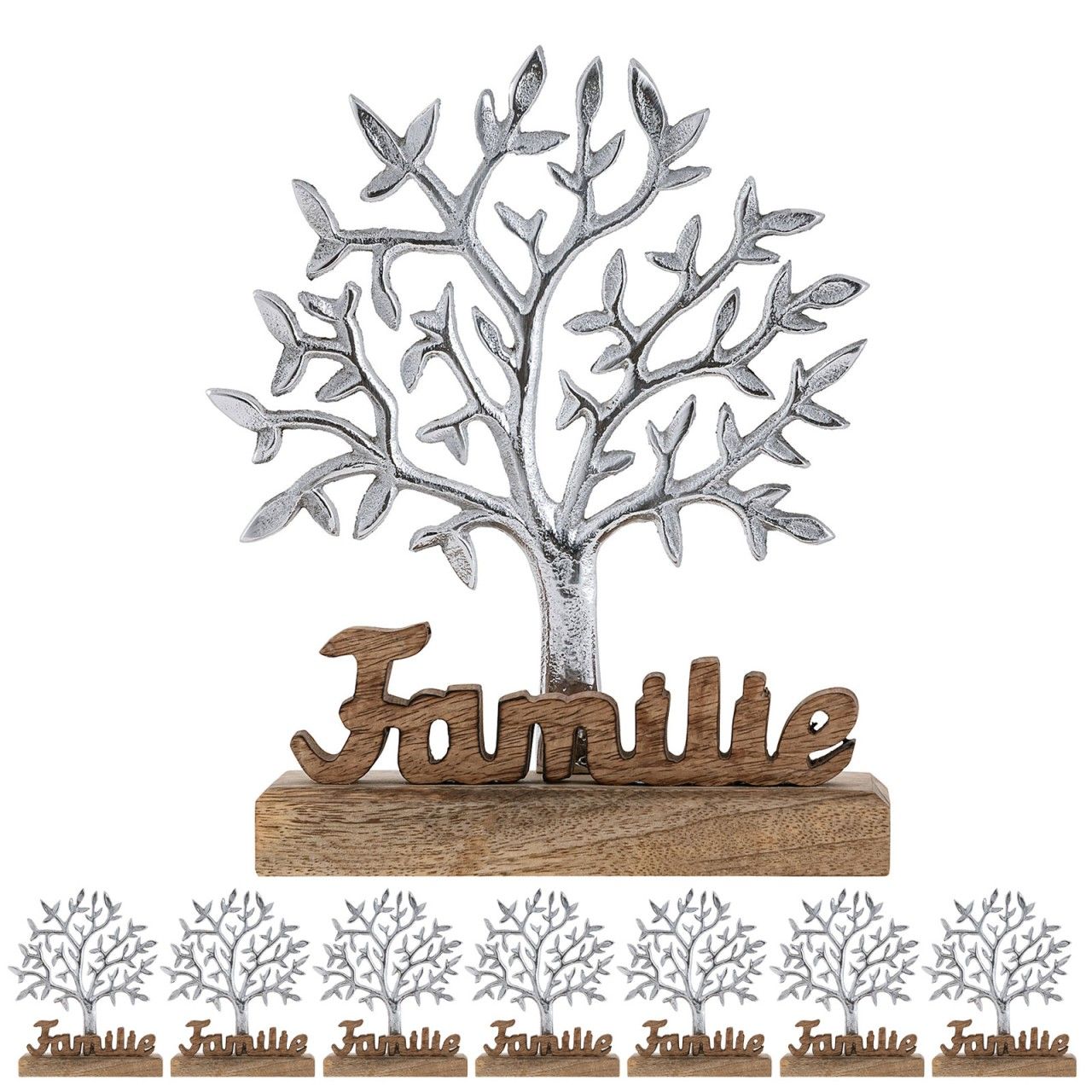 Dekofigur Lebensbaum mit Schriftzug Familie Holzfigur 20x27cm Masterbox 8-teilig Aluminium