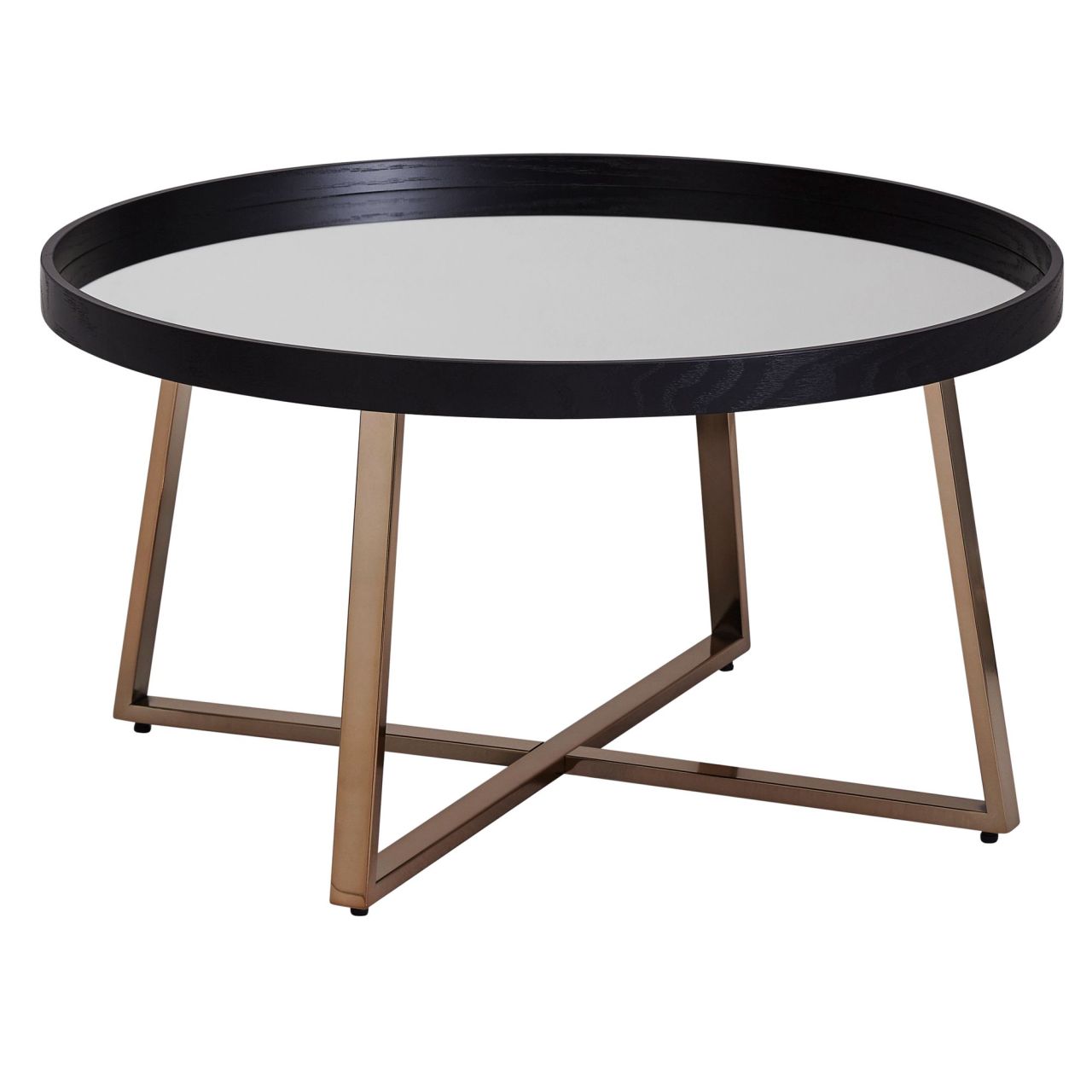 Design Runder Couchtisch im coolen Design Stylischer und moderner Wohnzimmertisch in angenehmer Farbkombination Spiegelnde Tischplatte auf goldfarben lackiertem Metallgeste...
