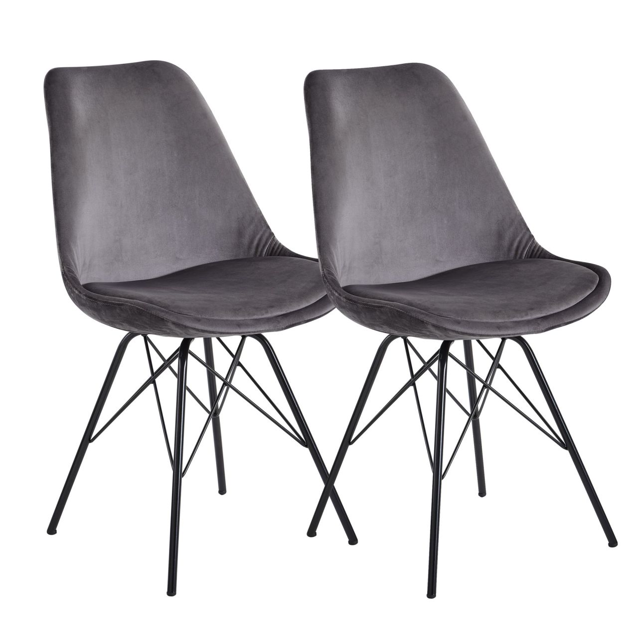 Design Moderne Esszimmerstühle in skandinavischem Design Sitzschale mit fest verbundenem Sitzpolster Vier robuste Standbeine als Kontrast zum weichen Samtbezug Abmessungen Breite: 48 cm Höhe: 86 cm Tiefe: 58 cm Sitzhöhe: 45 cm Sitzfläche (BxT): 48 x 41 cm Rückenlehnenhöhe: 41 cm Farbe Sitzschale: Grau Beine: Schwarz Besonderheiten Kunststoffkappen an der Unterseite der Beine verhindern ein Quietschen oder Kratzen auf Ihrem Boden Die Sitzschale in Verbindung mit der üppigen Polsterung schafft längeren Sitzgenuss am Esstisch Durch die Metallbeine besitzen die Küchenstühle einen sehr sicheren und festen Stand Empfohlene Maximalbelastbarkeit je Stuhl: 110 kg Material Sitzflächenbezug: Samt Beine: Lackiertes Eisen Textilzusammensetzung Bezug Sitzschale: 100% Polyester Lieferumfang Ein 2er Set Esszimmerstühle ohne Dekoration Montageanleitung und -material…