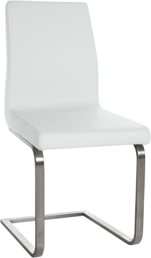 Esszimmerstuhl Belfort Kunstleder Der Esszimmerstuhl Belfort Kunstleder zeichnet sich durch modernes Design und hohe Funktionalität aus. Der Stuhl im Freischwinger-Stil passt sich nahtlos in verschiedene Einrichtungsstile ein und ist für den Einsatz im Esszimmer, in der Küche oder im Wohnzimmer geeignet. Das Gestell besteht aus robustem, matt gebürstetem Edelstahl, das für eine lange Haltbarkeit und Stabilität sorgt. Die Sitzfläche und die Rückenlehne sind mit einem langlebigen Kunstleder bezogen und verfügen über eine dicke Polsterung, die für hohen Sitzkomfort sorgt. Die ergonomisch geformte Rückenlehne unterstützt die natürliche Körperhaltung und reduziert den Druck auf die Taille, was besonders bei längerem Sitzen von Vorteil ist. Der Kunstlederbezug ist pflegeleicht und kann einfach mit einem feuchten Tuch gereinigt werden. Die an den Stuhlbeinen angebrachten Kunststoff-Füße schü…