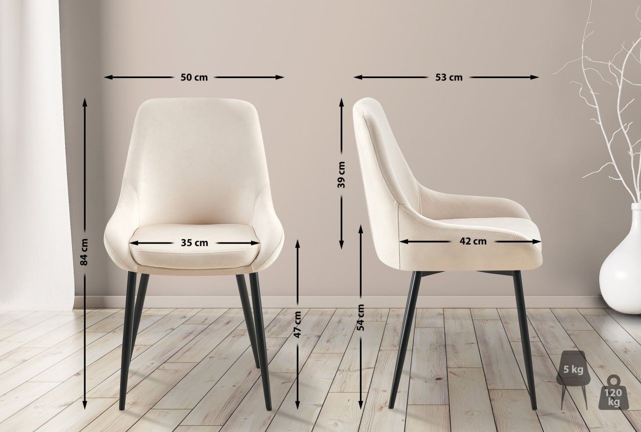 Esszimmerstuhl Elmira Samt-Bezug Der Esszimmerstuhl Elmira ist eine bequeme und zugleich stilvolle Sitzgelegenheit für Küche, Esszimmer und Wohnbereich. Der Stuhl verfügt über eine großzügig gepols...