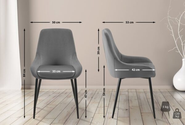 Esszimmerstuhl Elmira Samt schwarz dunkelgrau