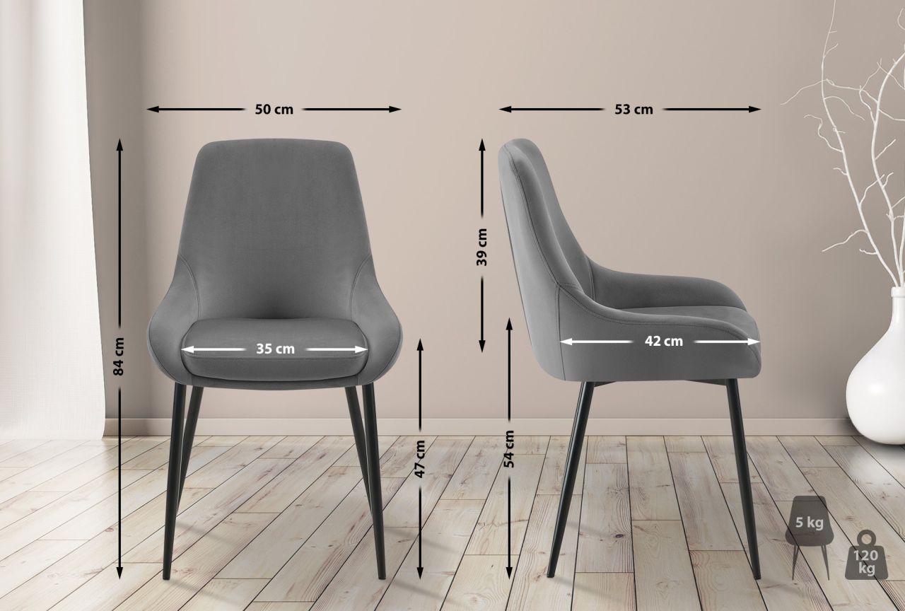 Esszimmerstuhl Elmira Samt-Bezug Der Esszimmerstuhl Elmira ist eine bequeme und zugleich stilvolle Sitzgelegenheit für Küche, Esszimmer und Wohnbereich. Der Stuhl verfügt über eine großzügig gepols...