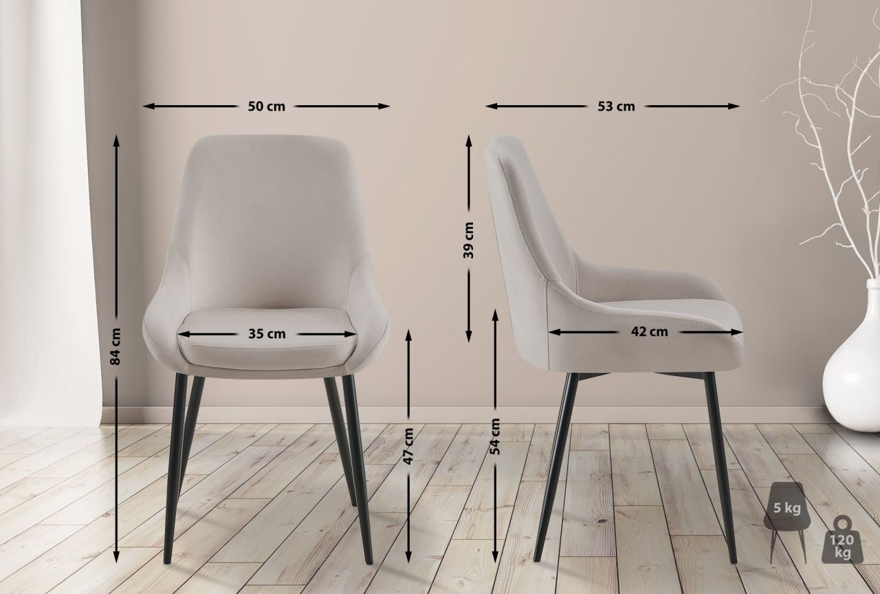 Esszimmerstuhl Elmira Samt-Bezug Der Esszimmerstuhl Elmira ist eine bequeme und zugleich stilvolle Sitzgelegenheit für Küche, Esszimmer und Wohnbereich. Der Stuhl verfügt über eine großzügig gepols...