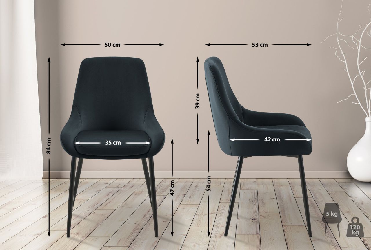 Esszimmerstuhl Elmira Samt-Bezug Der Esszimmerstuhl Elmira ist eine bequeme und zugleich stilvolle Sitzgelegenheit für Küche, Esszimmer und Wohnbereich. Der Stuhl verfügt über eine großzügig gepols...