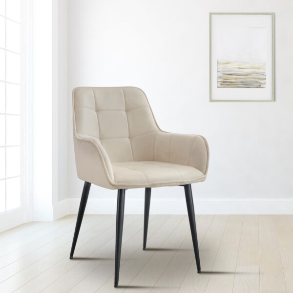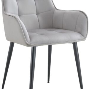 Esszimmerstuhl Ferndale Dieser Esszimmerstuhl kombiniert modernes Design mit komfortabler Funktionalität. Die gepolsterte Sitzfläche und Armlehnen bieten angenehmen Halt. Der pflegeleichte Samtbezug sorgt für eine stilvolle Optik, während das stabile Metallgestell mit Bodenschonern den Boden vor Kratzern schützt und Rutschen verhindert.Mit einer Belastbarkeit bis 150 kg und ergonomischer Form ist der Sessel ideal für längeres Sitzen geeignet. Der Armlehnstuhl ist in verschiedenen Farben verfügbar. Dieser Stuhl fügt sich harmonisch in unterschiedliche Einrichtungsstile ein perfekt für Esszimmer, Schlafzimmer oder als Lesesessel. Details: Gesamtbreite: 62 cm Gesamttiefe: 58 cm Gesamthöhe: 86 cm Sitzhöhe: 50 cm Sitzfläche (B x T): 45 x 44 cm Höhe der Rückenlehnen: 40 cm Höhe der Armlehnen: 64 cm Max. Belastbarkeit: 150 kg Gewicht: 6 kg Materialzusammensetzung: 100 % Polyester Sitz: Bez…