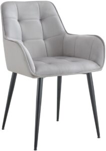 Esszimmerstuhl Ferndale Dieser Esszimmerstuhl kombiniert modernes Design mit komfortabler Funktionalität. Die gepolsterte Sitzfläche und Armlehnen bieten angenehmen Halt. Der pflegeleichte Samtbezug sorgt für eine stilvolle Optik, während das stabile Metallgestell mit Bodenschonern den Boden vor Kratzern schützt und Rutschen verhindert.Mit einer Belastbarkeit bis 150 kg und ergonomischer Form ist der Sessel ideal für längeres Sitzen geeignet. Der Armlehnstuhl ist in verschiedenen Farben verfügbar. Dieser Stuhl fügt sich harmonisch in unterschiedliche Einrichtungsstile ein perfekt für Esszimmer, Schlafzimmer oder als Lesesessel. Details: Gesamtbreite: 62 cm Gesamttiefe: 58 cm Gesamthöhe: 86 cm Sitzhöhe: 50 cm Sitzfläche (B x T): 45 x 44 cm Höhe der Rückenlehnen: 40 cm Höhe der Armlehnen: 64 cm Max. Belastbarkeit: 150 kg Gewicht: 6 kg Materialzusammensetzung: 100 % Polyester Sitz: Bez…