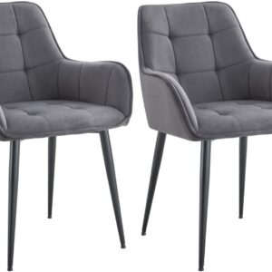 Esszimmerstuhl Jaysie Samtbezug Der Esszimmerstuhl Jaysie kombiniert hohen Sitzkomfort mit einer modernen und zeitlosen Optik. Für Ihren Esszimmertisch, die Küche, das Wohnzimmer, aber auch für andere Zwecke ist dieser Polstersessel somit eine tolle Wahl. Entscheidend für einen bequemen Sitz ist die angenehme Polsterung über Sitz, Rückenlehne und Armlehnen. Dabei ist die Sitzschale samt Rückenlehne durchgängig mit einem pflegeleichten Samtbezug versehen. Fundament für diesen Esszimmerstuhl ist das standfeste Vierfußgestell aus schwarzem, pulverbeschichtetem Metall. So kann der Stuhl Jaysie bedenkenlos mit bis zu 150 Kilogramm belastet werden. Bodenschoner beugen dabei Beschädigungen empfindlicher Böden vor. Details: Gesamtbreite: 57 cm Gesamthöhe: 80 cm Gesamttiefe: 58 cm Sitzhöhe: 47 cm Sitzfläche (B x T): 44 x 43 cm Höhe Rückenlehne: 33 cm Höhe Armlehnen: 65 cm Max. Belastbarkeit: 1…