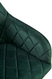 Esszimmerstuhl Monett Samtbezug Der Esszimmerstuhl Monett ist eine bequeme und zugleich stilvolle Sitzgelegenheit für Küche, Esszimmer und Wohnbereich. Der Stuhl verfügt über eine großzügig gepolsterte Sitzfläche mit rautenförmigem Steppmuster. Das Polster ermöglicht komfortables Sitzen auch über einen längeren Zeitraum hinaus. Ergänzt wird der Sitzkomfort durch die Rückenlehne und die Armlehnen. Das Vierfußgestell aus Metall, verspricht Stabilität und sicheren Stand. Mit bis zu 120 Kilogramm kann der Polsterstuhl bedenkenlos belastet werden. Die Bodenschoner unter den Stuhlbeinen beugen Beschädigungen empfindlicher Böden vor. Details: Gesamthöhe: 83 cm Gesamtbreite: 53 cm Gesamttiefe: 61 cm Sitzhöhe: 51 cm Sitzfläche (B x T): 44 x 44 cm Höhe Rückenlehne: 39 cm Höhe Armlehne (ab Boden): 65 cm Max. Belastbarkeit: 120 kg Gewicht: 6 kg Materialzusammensetzung: 100 % Polyester Sitz: Bezug…