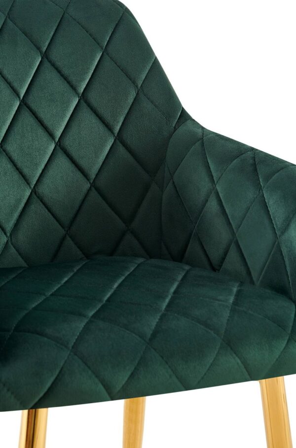 Esszimmerstuhl Monett Samtbezug Der Esszimmerstuhl Monett ist eine bequeme und zugleich stilvolle Sitzgelegenheit für Küche, Esszimmer und Wohnbereich. Der Stuhl verfügt über eine großzügig gepolsterte Sitzfläche mit rautenförmigem Steppmuster. Das Polster ermöglicht komfortables Sitzen auch über einen längeren Zeitraum hinaus. Ergänzt wird der Sitzkomfort durch die Rückenlehne und die Armlehnen. Das Vierfußgestell aus Metall, verspricht Stabilität und sicheren Stand. Mit bis zu 120 Kilogramm kann der Polsterstuhl bedenkenlos belastet werden. Die Bodenschoner unter den Stuhlbeinen beugen Beschädigungen empfindlicher Böden vor. Details: Gesamthöhe: 83 cm Gesamtbreite: 53 cm Gesamttiefe: 61 cm Sitzhöhe: 51 cm Sitzfläche (B x T): 44 x 44 cm Höhe Rückenlehne: 39 cm Höhe Armlehne (ab Boden): 65 cm Max. Belastbarkeit: 120 kg Gewicht: 6 kg Materialzusammensetzung: 100 % Polyester Sitz: Bezug…