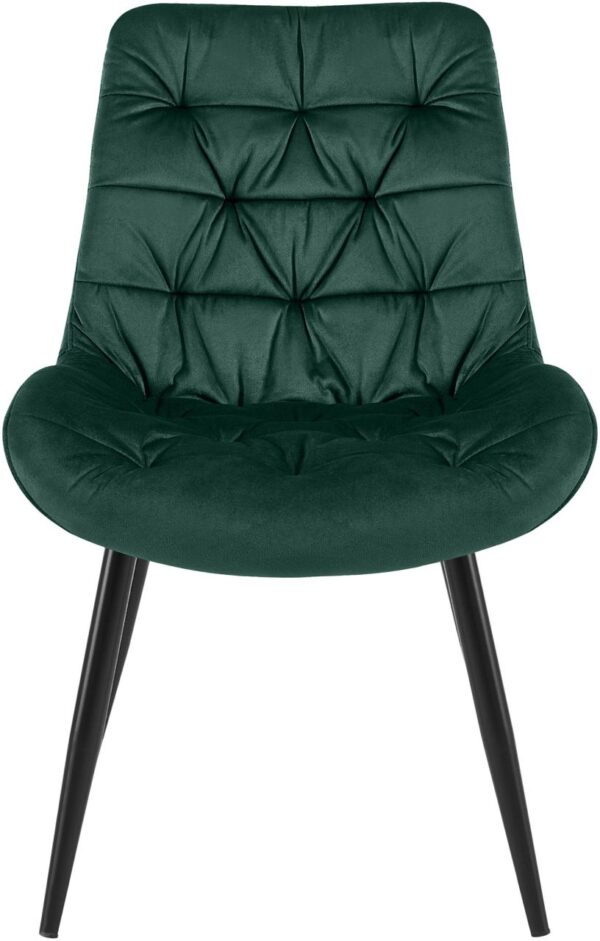 Esszimmerstuhl Rossford Samtbezug Der Esszimmerstuhl Rossford kombiniert hohen Sitzkomfort mit einer modernen und zeitlosen Optik. Für Ihren Esszimmertisch, die Küche, das Wohnzimmer, aber auch für andere Zwecke ist dieser Polsterstuhl somit eine tolle Wahl. Entscheidend für einen bequemen Sitz ist die angenehme Polsterung über Sitz und Rückenlehne. Dabei sind sowohl Sitzschale als auch Rückenlehne durchgängig mit einem pflegeleichten Samtbezug versehen. Das schicke Steppmuster erzeugt einen Blickfang. Fundament für diesen Esszimmerstuhl ist das standfeste Vierfußgestell aus schwarzem, pulverbeschichtetem Metall. So kann der Stuhl Rossford bedenkenlos mit bis zu 150 Kilogramm belastet werden. Bodenschoner beugen dabei Beschädigungen empfindlicher Böden vor. Details: Gesamtbreite: 56 cm Gesamthöhe: 85 cm Gesamttiefe: 63 cm Sitzhöhe: 47 cm Sitzfläche (B x T): 56 x 45 cm Höhe Rückenlehne…