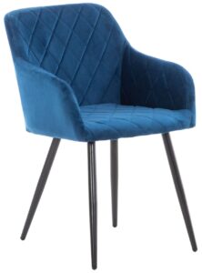 Esszimmerstuhl Shila Der Esszimmerstuhl Shila ist eine bequeme und zugleich stilvolle Sitzgelegenheit für den täglichen Gebrauch. Der Stuhl verfügt über eine großzügig gepolsterte Sitzfläche und ermöglicht somit ein angenehmes Sitzen auch über einen längeren Zeitraum hinaus. Ergänzt wird der Sitzkomfort durch die Rückenlehne und die Armlehnen. Das Vierfußgestell aus Metall, verspricht Stabilität und sicheren Stand. Dieser Esszimmerstuhl verleiht ein modernes Flair und ergänzt wunderbar jedes Wohnambiente. Zudem befinden sich Bodenschoner unter den Füßen, die ein Verkratzen des Bodens verhindern. Der Esszimmerstuhl ist wahlweise mit Samt- oder Stoffbezug erhältlich. Materialzusammensetzung: 100% Polyester Ca. Maße: Gesamthöhe: 84 cm Gesamtbreite: 47 cm Gesamttiefe: 44 cm Sitzhöhe: 50 cm Sitzfläche (BxT): 43 x 42 cm Höhe Rückenlehne: 38 cm Breite Rückenlehne: 47 cm Höhe Armlehne: 18 – 1…