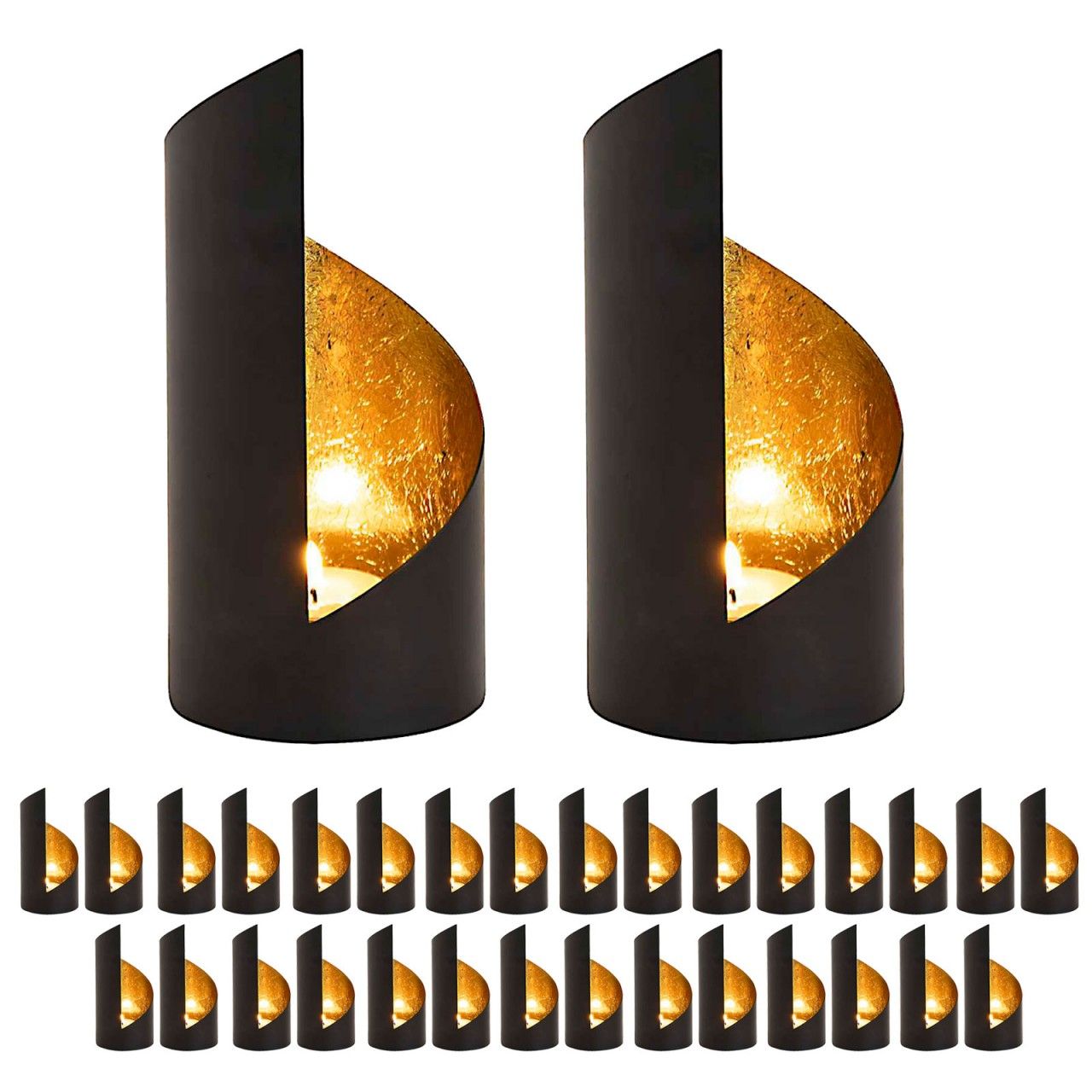 Kerzenhalter 32-teilig Set 2 x 16 VE Teelichthalter Kevin zylindrisch schwarz matt innen vergoldet