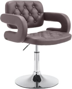 Lounger Dublin Kunstleder-Bezug Der Loungestuhl Dublin verkörpert zeitlose Eleganz und modernen Komfort. Sein gesteppter Kunstleder-Bezug verleiht nicht nur ein luxuriöses Flair, sondern bietet auch ein angenehmes Sitzgefühl. Der Polsterstuhl ist stufenlos höhenverstellbar, sodass sich die Sitzhöhe zwischen 44 und 60 cm einstellen lässt. Dadurch ist der Stuhl für verschiedene Tischhöhen und Körpergrößen einsetzbar. Mit geschwungenen Armlehnen und einer Rückenlehne für den unteren Rückenbereich bietet er komfortable Unterstützung insbesondere für den unteren Rückenbereich. Das robuste Metallgestell gewährleistet Stabilität und eine Belastbarkeit von bis zu 120 Kilogramm. Bodenschoner schützen Böden vor Kratzern. Der Stuhl ist die perfekte Ergänzung zu modern eingerichteten Räumen, ob für Wohnzimmer, Esszimmer und Küche oder öffentliche Bereiche, wie Hotels, Lounges und Wartebereiche. M…
