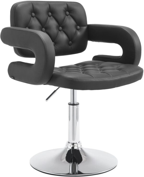 Lounger Dublin Kunstleder-Bezug Der Loungestuhl Dublin verkörpert zeitlose Eleganz und modernen Komfort. Sein gesteppter Kunstleder-Bezug verleiht nicht nur ein luxuriöses Flair, sondern bietet auch ein angenehmes Sitzgefühl. Der Polsterstuhl ist stufenlos höhenverstellbar, sodass sich die Sitzhöhe zwischen 44 und 60 cm einstellen lässt. Dadurch ist der Stuhl für verschiedene Tischhöhen und Körpergrößen einsetzbar. Mit geschwungenen Armlehnen und einer Rückenlehne für den unteren Rückenbereich bietet er komfortable Unterstützung insbesondere für den unteren Rückenbereich. Das robuste Metallgestell gewährleistet Stabilität und eine Belastbarkeit von bis zu 120 Kilogramm. Bodenschoner schützen Böden vor Kratzern. Der Stuhl ist die perfekte Ergänzung zu modern eingerichteten Räumen, ob für Wohnzimmer, Esszimmer und Küche oder öffentliche Bereiche, wie Hotels, Lounges und Wartebereiche. M…