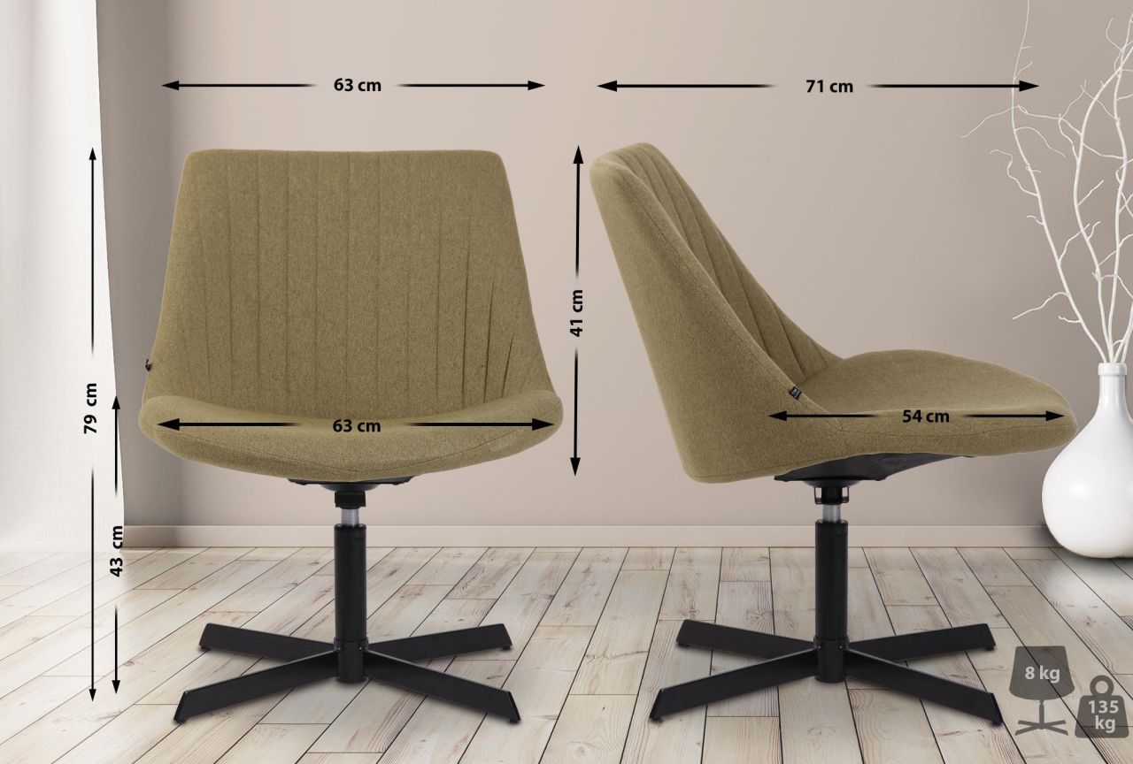 Lounger Granby Der Lounger Granby ist die perfekte Ergänzung zu wohnlich modernen Räumen und wird in jedem Zimmer zum Blickfang. Die hohe Rückenlehne und die angenehme und komfortable Polsterung ermöglichen ein bequemes Sitzen auch über einen längeren Zeitraum hinaus. Dank pflegeleichter Materialien ist der Loungesessel jederzeit schnell und einfach zu reinigen. Auf dem modernen 4-Fuß Gestell aus Metall steht dieser Stuhl bei jedem Anlass gut da, zudem befinden sich Bodenschoner unter den Füßen, die ein Verkratzen des Bodens verhindern. Materialzusammensetzung: 100% Polyester Ca. Maße: Gesamthöhe: 79 cm Gesamtbreite: 63 cm Gesamttiefe: 71 cm Sitzhöhe: 43 cm Sitzfläche (BxT): 63 x 54 cm Höhe Rückenlehne: 41 cm Max. Belastbarkeit: 135 kg Gewicht: 8 kg Sitz: Bezug: Stoff Angenehme Sitzposition durch Rückenlehne Sitzfläche und Rückenlehne angenehm gepolstert Gestell: Material: Metall Sich…