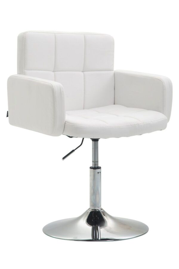 Lounger Los Angeles Kunstleder Stilvolles Quadrat-Design in exklusiver Verarbeitung: Dieser Lounge Sessel zeichnet sich durch seine zeitlos schicke Kubus-Form aus. Die gepolsterte Sitzschale erhält durch die stabilen Armlehnen zusätzlichen Komfort und macht den Lounger fast schon zum kleinen Sessel. Zudem ist er höhenverstellbar und um 360° drehbar – somit ist mehr Flexibilität garantiert. Dank dieser Verbindung aus besonderer Optik und bequemer Funktion stellt der Lehnstuhl ein perfektes Sitzmöbel dar – ob für private Räume oder stilvolle Business- und Lounge-Bereiche. Der Sitz ist mit Kunstleder bezogen, welcher mit besonderer Steppung versehen ist und diesem Lounge Chair seinen exklusiven Look verleiht. Standsicher steht er auf einem Trompetenfuß aus Metall in Chromoptik. Dank pflegeleichter Materialien ist dieser Lounger auch schnell und einfach zu reinigen. Wählen Sie nur noch pa…