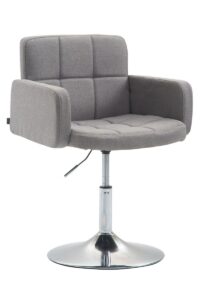 Lounger Los Angeles Stoff Stilvolles Quadrat-Design in exklusiver Verarbeitung: Dieser Lounge Sessel zeichnet sich durch seine zeitlos schicke Kubus-Form aus. Die gepolsterte Sitzschale erhält durch die stabilen Armlehnen zusätzlichen Komfort und macht den Lounger fast schon zum kleinen Sessel. Zudem ist er höhenverstellbar und um 360° drehbar – somit ist mehr Flexibilität garantiert. Dank dieser Verbindung aus besonderer Optik und bequemer Funktion stellt der Lehnstuhl ein perfektes Sitzmöbel dar – ob für private Räume oder stilvolle Business- und Lounge-Bereiche. Der Sitz ist mit Stoff bezogen, welcher mit besonderer Steppung versehen ist und diesem Lounge Chair seinen exklusiven Look verleiht. Standsicher steht er auf einem Trompetenfuß aus Metall in Chromoptik. Materialzusammensetzung: 100% Polyester Sitz: Bezug: Stoff Sitz, Arm- und Rückenlehne bequem gepolstert Stylisch gesteppt…