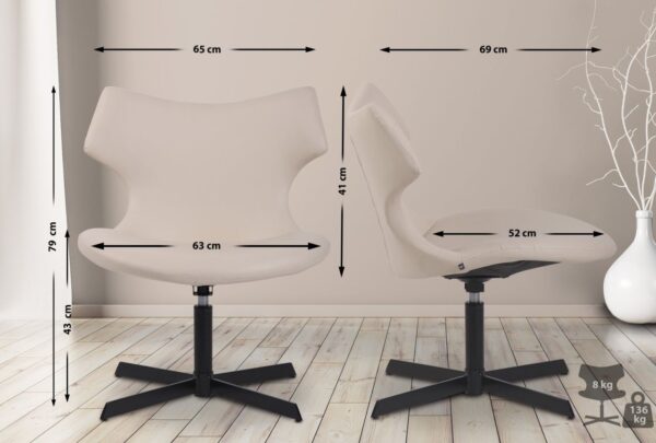 Lounger Welland Kunstleder Der Relaxsessel ist mit einem modernen 4-Fuß Gestell aus Metall und einem 360 Grad drehbaren Sitz ausgestattet. Er ist in einer Auswahl an Farben verfügbar. Sein Bezug aus Kunstleder bietet eine pflegeleichte Oberfläche. Die Rückenlehne unterstützt eine angenehme Sitzhaltung. Bodenschoner an der Unterseite des Gestells helfen, den Boden vor Abnutzung zu schützen. Materialzusammensetzung Sitzbezug: 100% Polyurethan Ca. Maße: Gesamthöhe: 79 cm Gesamtbreite: 65 cm Gesamttiefe: 69 cm Sitzhöhe: 43 cm Sitzfläche (BxT): 63 x 52 cm Höhe Rückenlehne: 41 cm Max. Belastbarkeit: 136 kg Gewicht: 8 kg Sitz: Bezug: Kunstleder Angenehme Sitzposition durch Rückenlehne Sitzfläche und Rückenlehne angenehm gepolstert Gestell: Material: Metall Sicherer Stand Stabiles Vierfußgestell Besonderheiten: Modernes, funktionales Design Stabile Konstruktion & strapazierfähiger Bezug Komfo…